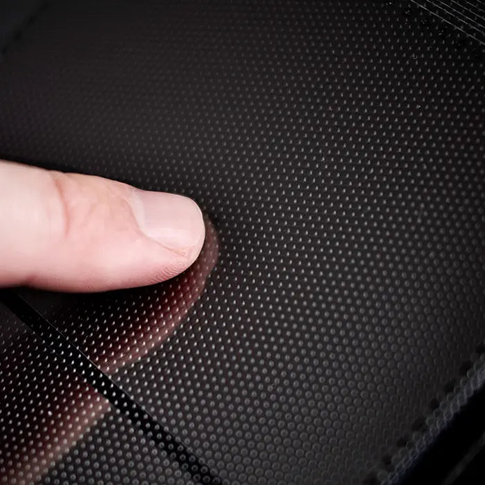 Premium microfiber vegan leather with a reinforced core and cushioned protection layer inside and out.